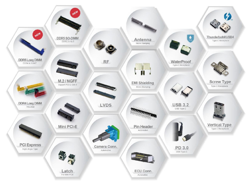Product series and applications We focus on development Fine pitch High pin count SMT type Applications Computer & Consumer Electronics Server & Communication/5G Mobile & Microelectronics Vehicle electronics